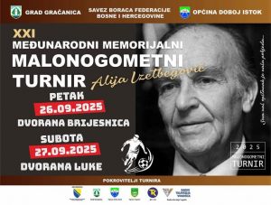 U petak (26.09.2025) u Doboj Istoku, sportska dvorana „Brijesnica“ i subotu sportska dvorana „Luke“ (27.09.2025) održat će se „XX Međunarodni memorijalni malonogometni turnir „Alija Izetbegović“ a pod pokroviteljstvom; Saveza boraca Federacije Bosne i Hercegovine, Grada Gračanica, Općine Doboj Istok, Općine Vogošća, Radio televizije Vogošća i Radio televizije Tuzlanskog kantona.